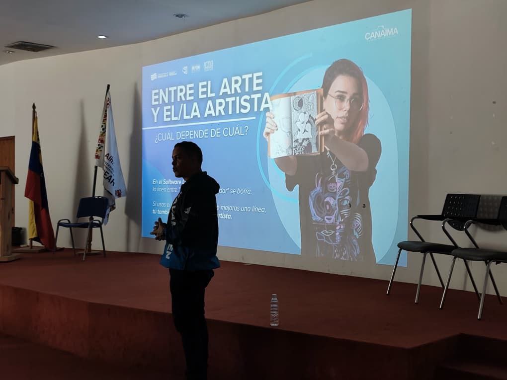 Durante su intervención, el equipo de Canaima GNU/Linux destacó la importancia de comprender, estudiar y adaptar el Software Libre a las necesidades propias del sector artístico y educativo, resaltando que este tipo de tecnología no posee costos por licencias, permite la distribución y modificación de aplicaciones, y fortalece el desarrollo de la comunidad de arte digital en Venezuela.